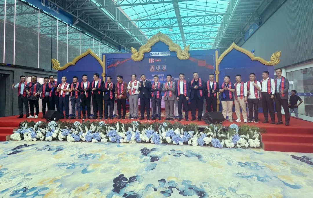 柬埔寨王國泰科萊斯·薩姆拉克部長,尊那林局長,鐵弓副部長,柬華理事總會方燦成將軍,董丁成公爵,江蘇總商會吳金艮會長,以及朗斯衛(wèi)浴董事長向偉昌、超威動力集團總裁兼副董事長喬曉華、索菲亞-米蘭納副總裁呂先紅、康寶VV董事長馮耀根以及冠珠瓷磚、火星人、左右沙發(fā)、敏華控股、海信集團、蒙娜麗莎、浪鯨衛(wèi)浴等數十個國內家居品牌領導和代表共同出席本次開業(yè)盛典。