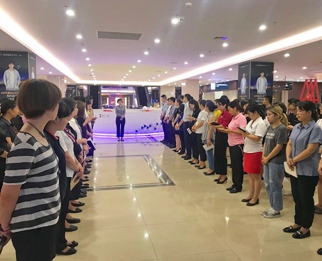 首先,于總主持了業(yè)務(wù)部的大晨會,對業(yè)務(wù)部全體員工及在場商戶定下了新的目標(biāo):“帶出一流的隊伍,創(chuàng)出一流的業(yè)績,展現(xiàn)一流的風(fēng)貌!”大家共事與武昌店這個高端賣場中,小到服裝禮儀、陳列迎賓,大到店面管理、日常銷售,都要對自己高標(biāo)準(zhǔn),嚴(yán)要求,力爭與武昌店的高端賣場形象相匹配。