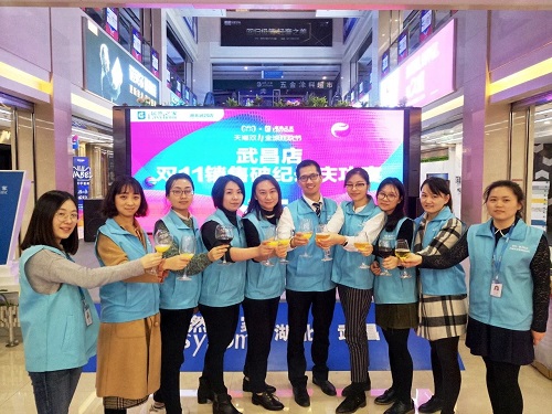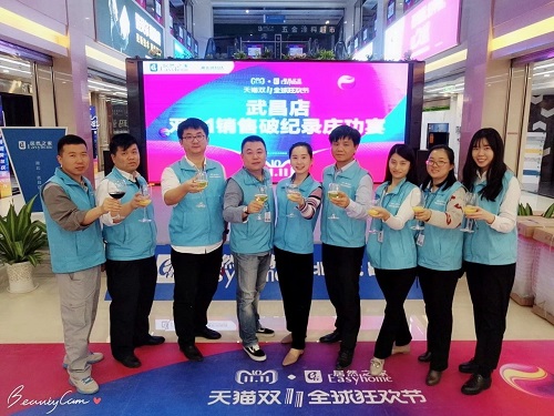 為慶祝居然之家&天貓雙十一活動完美收官,武昌店銷售再創(chuàng)新高,慰勞全體員工在雙十一活動期間的辛苦付出,居然之家武昌店在雙十一嗨購活動結(jié)束后,在負(fù)一樓中廳舉行慶功宴,全體員工歡聚一堂,為武昌店在此次活動的輝煌業(yè)績舉杯暢飲!