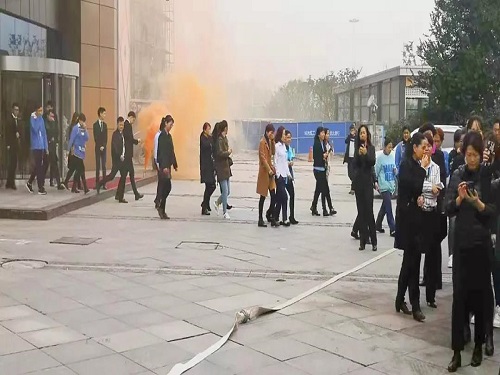 早上8:30,隨著大樓警報(bào)聲響起,模擬賣場(chǎng)內(nèi)發(fā)生火情,正迅速蔓延。各樓層管理員迅速組織員工緊急疏散。演習(xí)開始后,員工們用濕毛巾捂著口鼻,彎著腰逃離“火災(zāi)現(xiàn)場(chǎng)”,并迅速關(guān)閉大樓內(nèi)所有消防卷簾,控制“火勢(shì)”蔓延,所有員工緊張有序地逃離火場(chǎng)成功疏散到安全地帶。